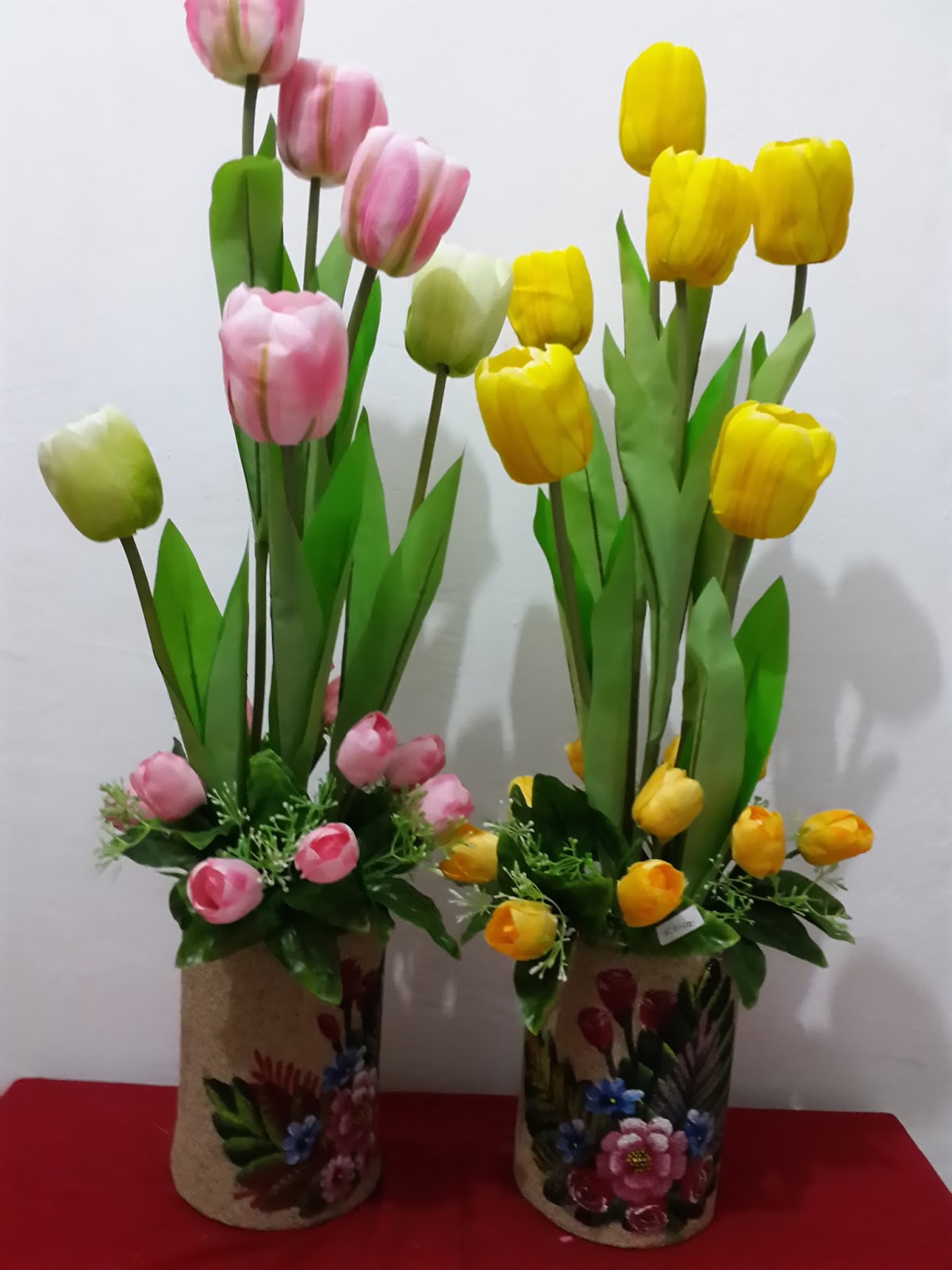 Bunga tulip plastik vas gembor air kecil keramik pajangan meja bunga buatan artificial dekorasi hiasan pajangan meja rumah warna merah. Grosir bibit benih bunga tulip di kota jogja / yogyakarta.