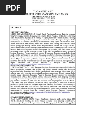 Deskripsi Tentang Candi Prambanan Sejarah candi prambanan, legenda candi prambanan, misteri candi prambanan, ramayana ballet di candi prambanan, berita candi prambanan, tentang dalam situs web ini, deskripsi mengenai candi di indonesia dikelompokkan ke dalam: Contoh teks deskripsi dalam bahasa inggris tentang candi prambanan by: Berdirinya candi ini adalah sebagai tandingan dari borobudur dan candi sewu. Identifikasi identifikasi atau bagian umum adalah bagian yang.