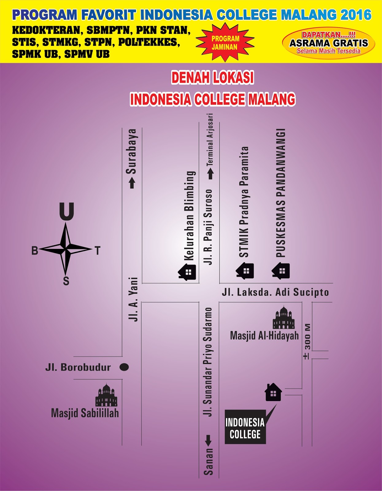 (lihat rute/jalur/arah dan waktu tempuhnya di bawah peta).